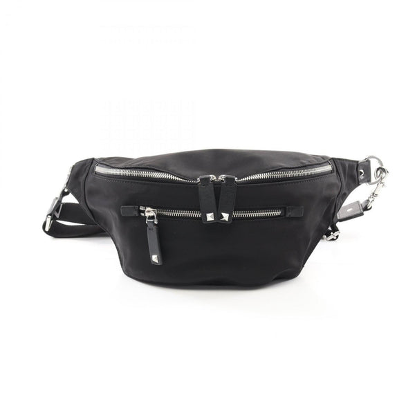 Valentino Rockstud Waist Bag Body Nylon Leather Men's Black