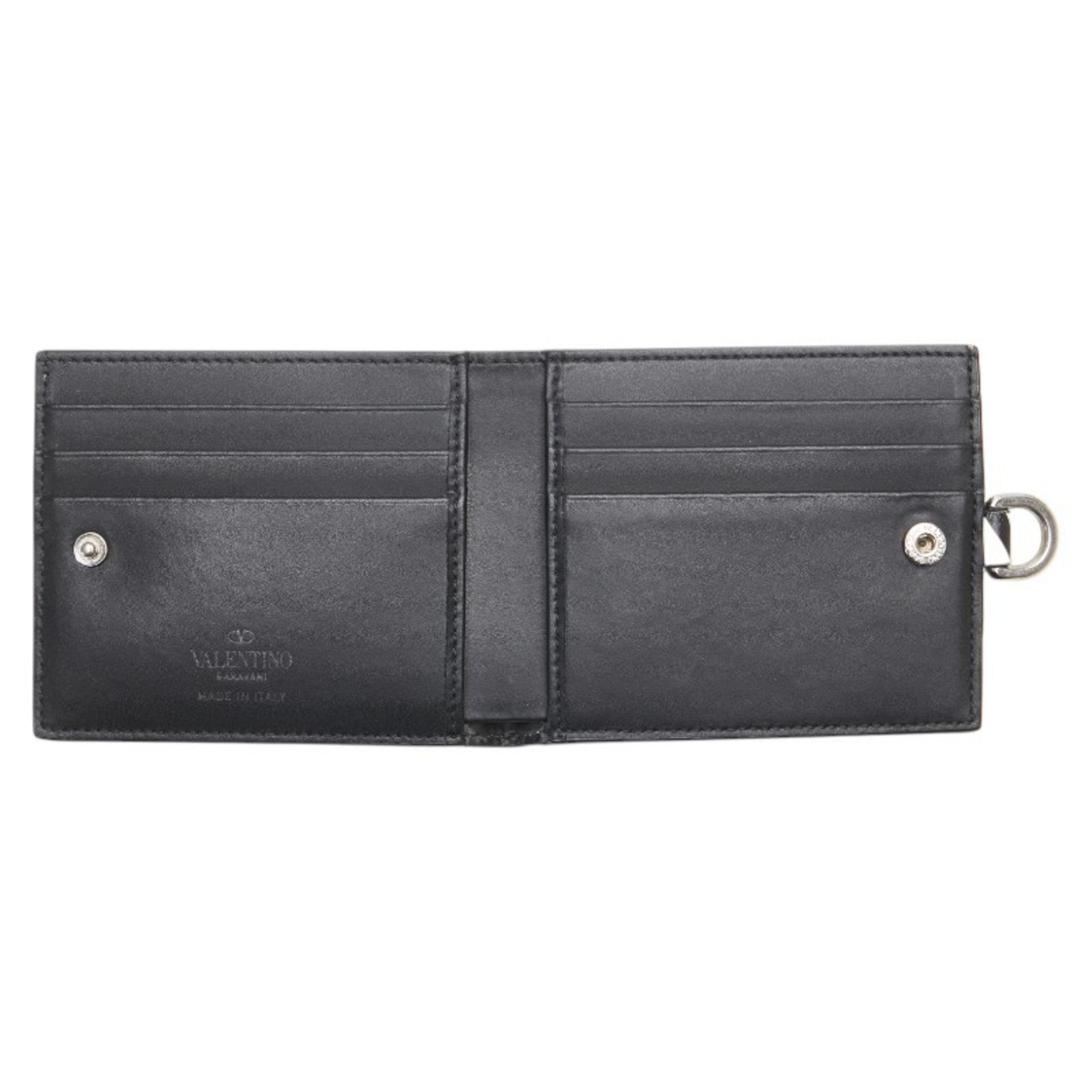 Valentino VLTN logo bifold compact wallet in white and black leather for women.