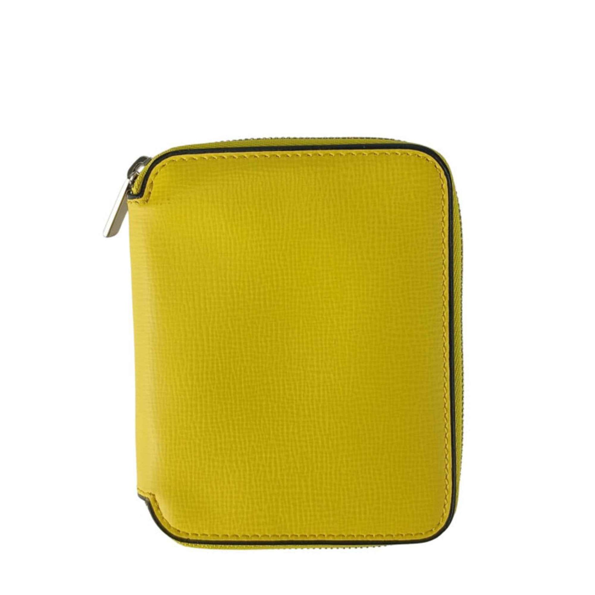 VALEXTRA Zip-Around Card Holder V8L34 in Yellow Grained Calfskin for Men and Women, Round Billfold