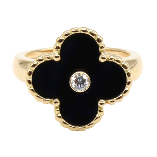Van Cleef & Arpels Vintage Alhambra Ring, 18K Yellow Gold with Diamonds and Onyx, Clear or Black, for Women