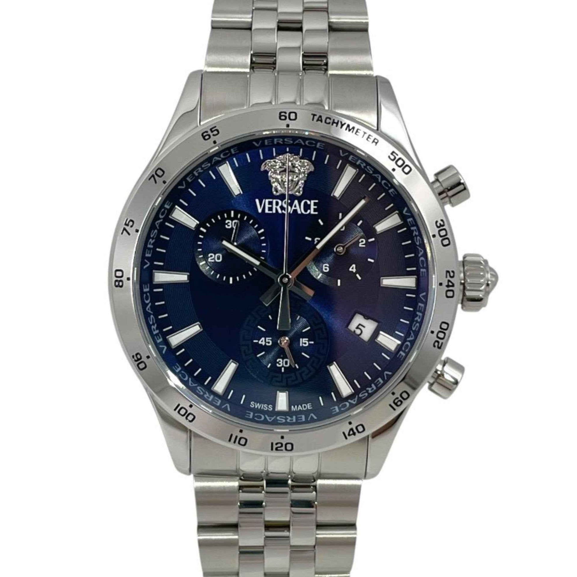 VERSACE Helenium Chronograph VECFA0124 Men\'s Stainless Steel Quartz Watch with Blue Dial