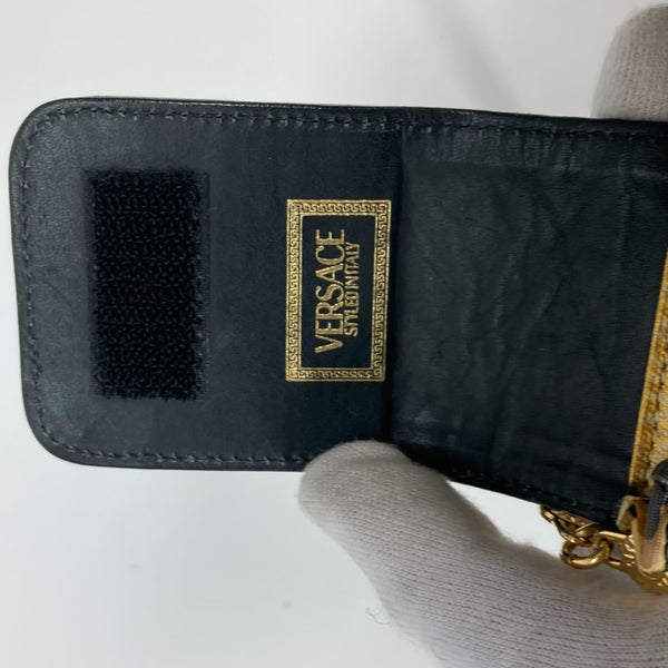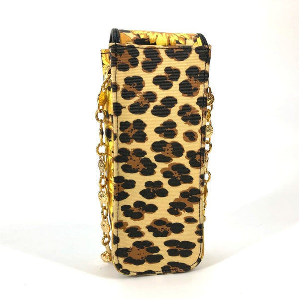 VERSACE Vintage Leopard Print Pochette with Chain Phone Case and Shoulder Bag in PVC/Leather, Yellow, for Women