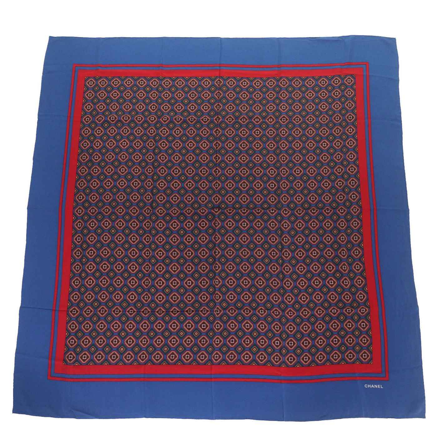 Vintage CHANEL 100% Silk Scarf with Logo and All-Over Print, Size 140, Blue Red, Made in Italy, Women\'s