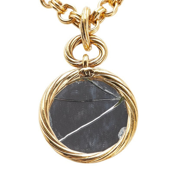 Vintage Chanel Coco Mark Round Mirror Necklace, Gold Plated, Women\'s, CHANEL