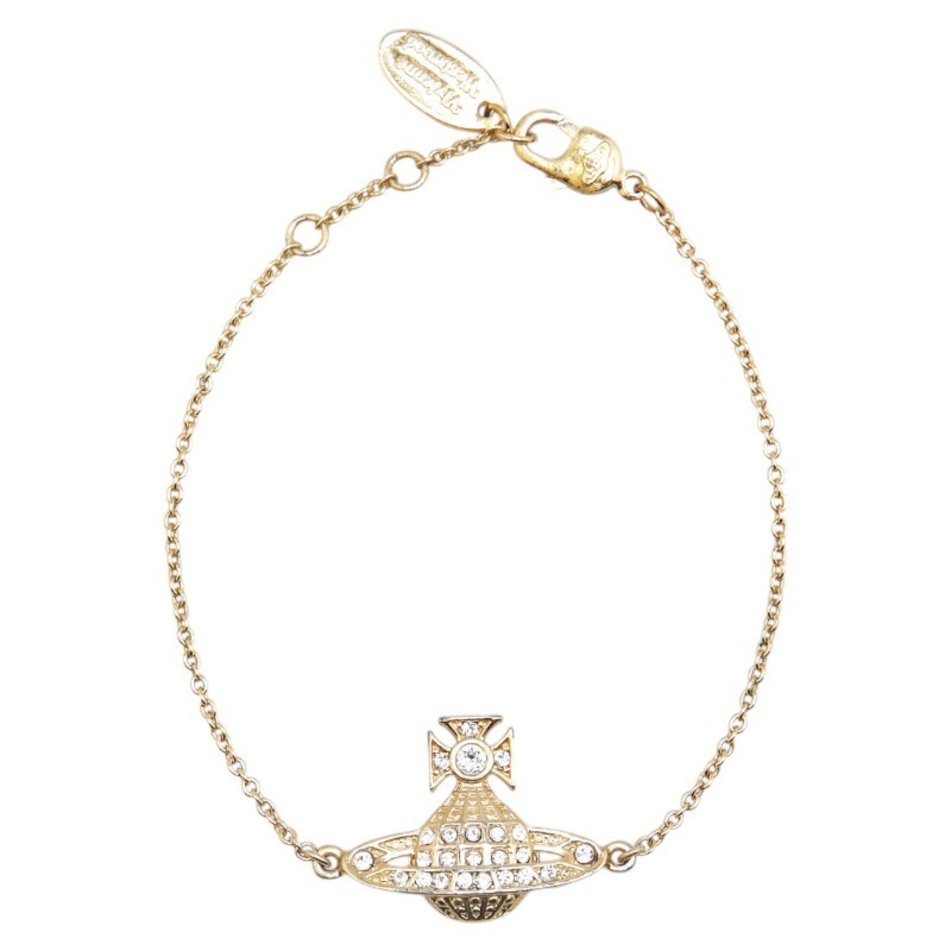 Vivienne Westwood Minibus Relief Rhinestone Chain Bracelet, Gold Plated, Women\'s