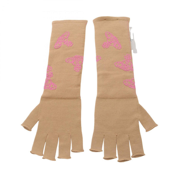 Vivienne Westwood OLL OVER ORBS Fingerless Long Gloves, Wool, Women\'s, Brown and Pink, S8202002SK004F004