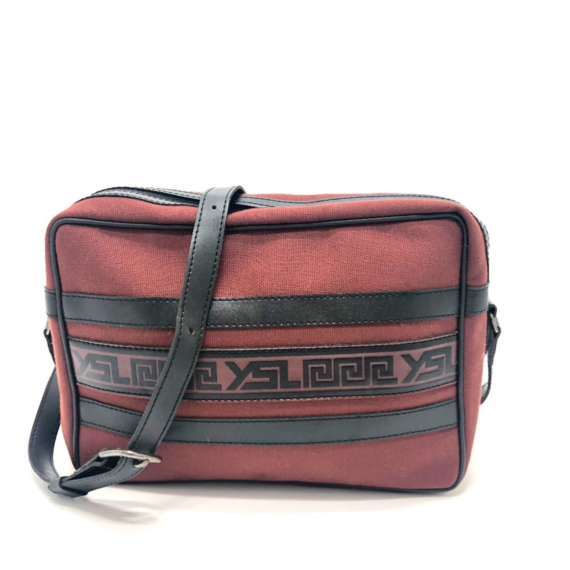 YVES SAINT LAURENT Logo Shoulder Bag/Logo Square Canvas/Leather Unisex Red