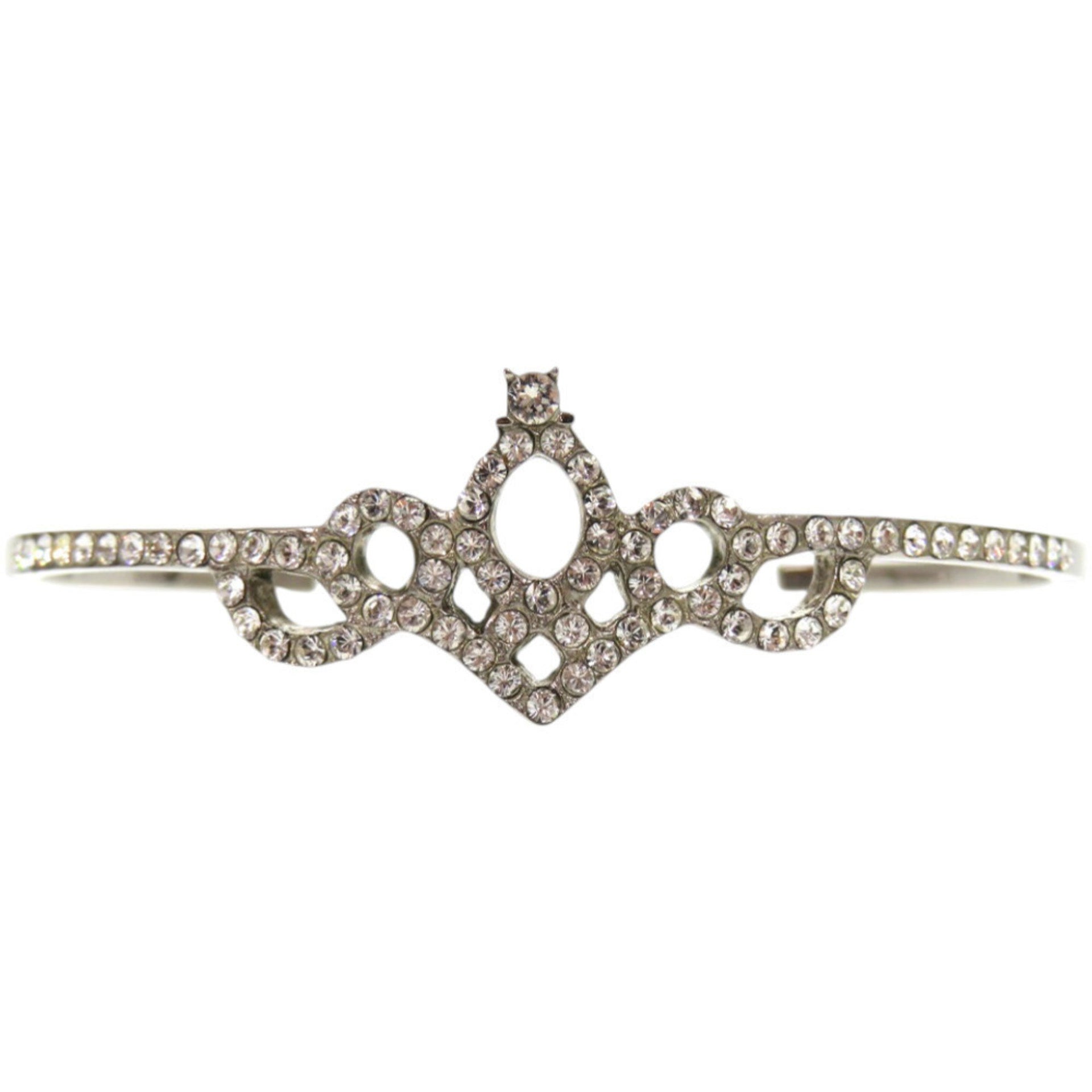 Yves Saint Laurent Saint Laurent Paris Crystal Tiara Cuff Metal Silver Bracelet 0636 SAINT LAURENT PARIS